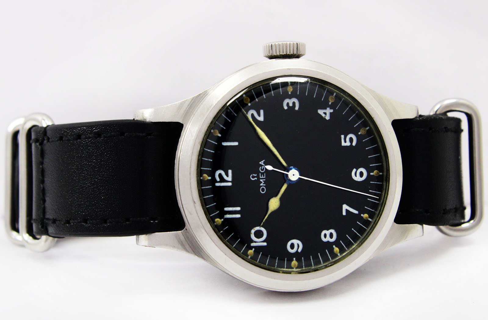 - Omega Military RAF Rare Vintage Black Dial 36mm Ref 6B/159 Winding Steel Watch