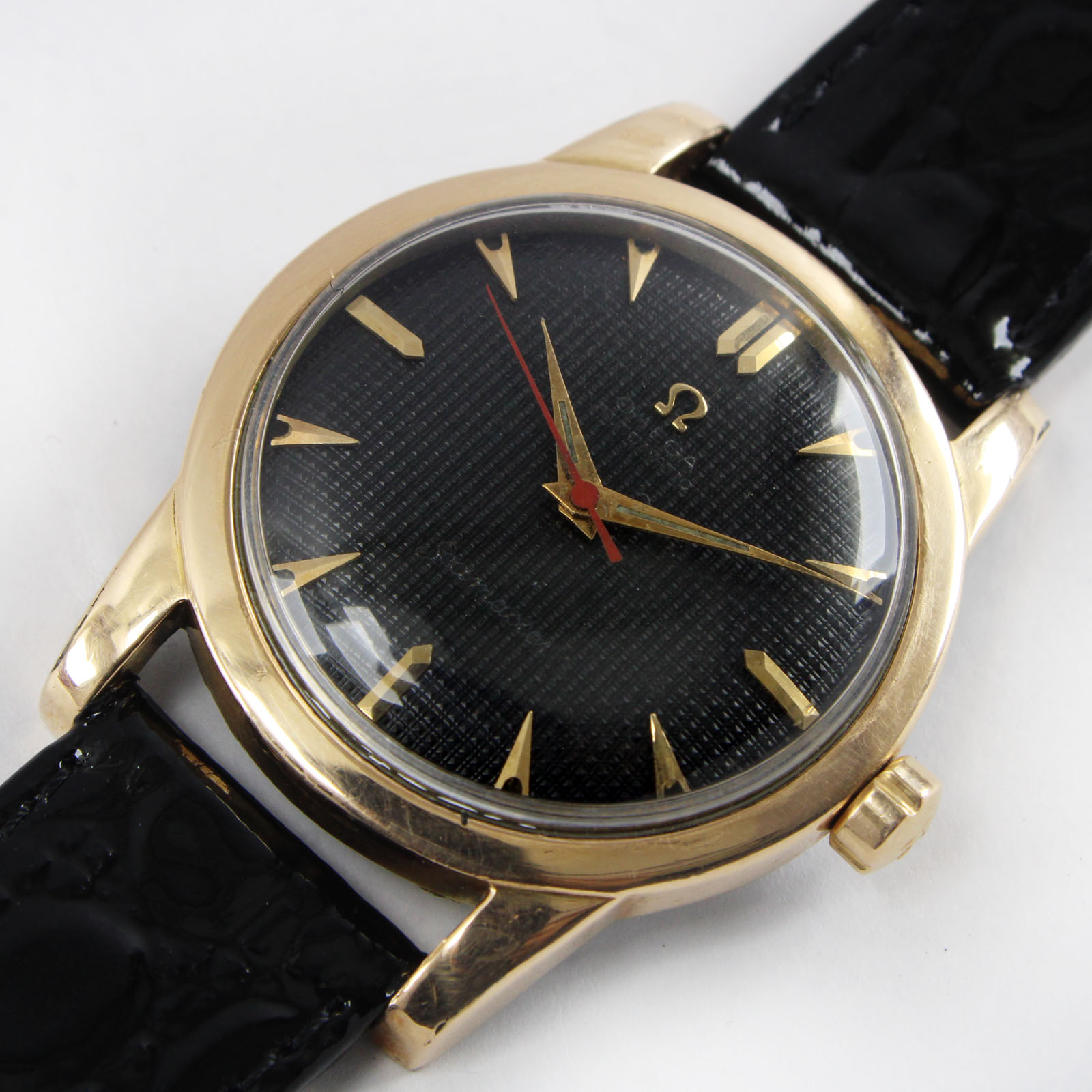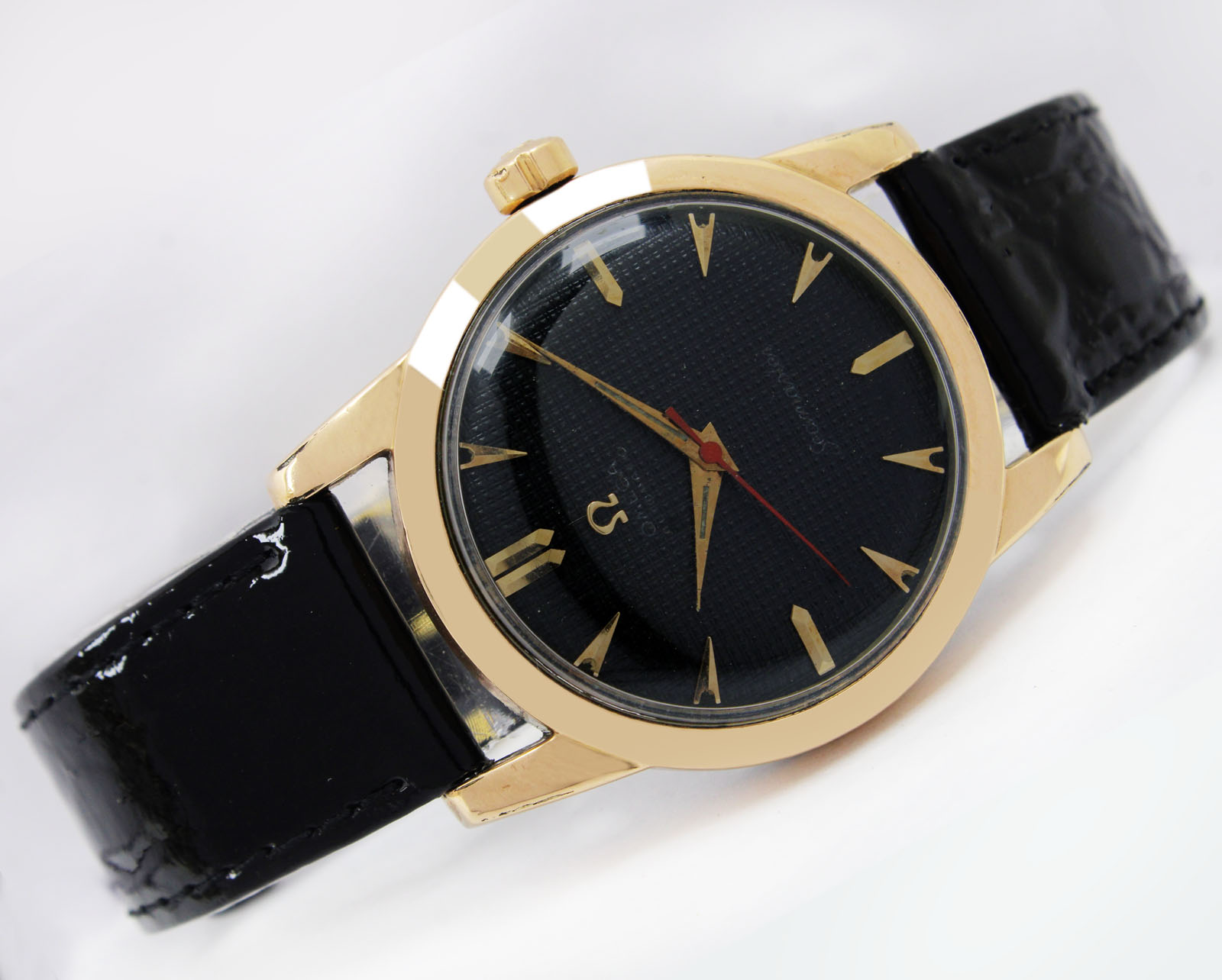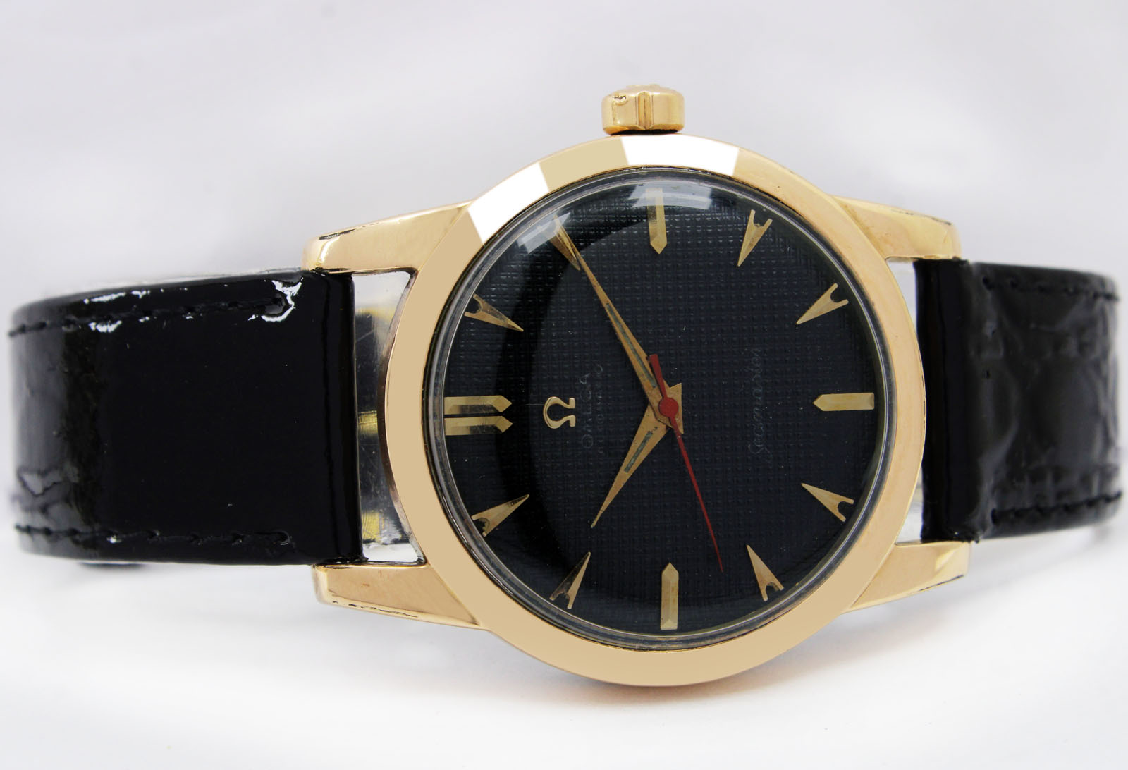 - OMEGA Seamaster Automatic Black Honey Comb Gold Cap Men Watch Ref 2577-25