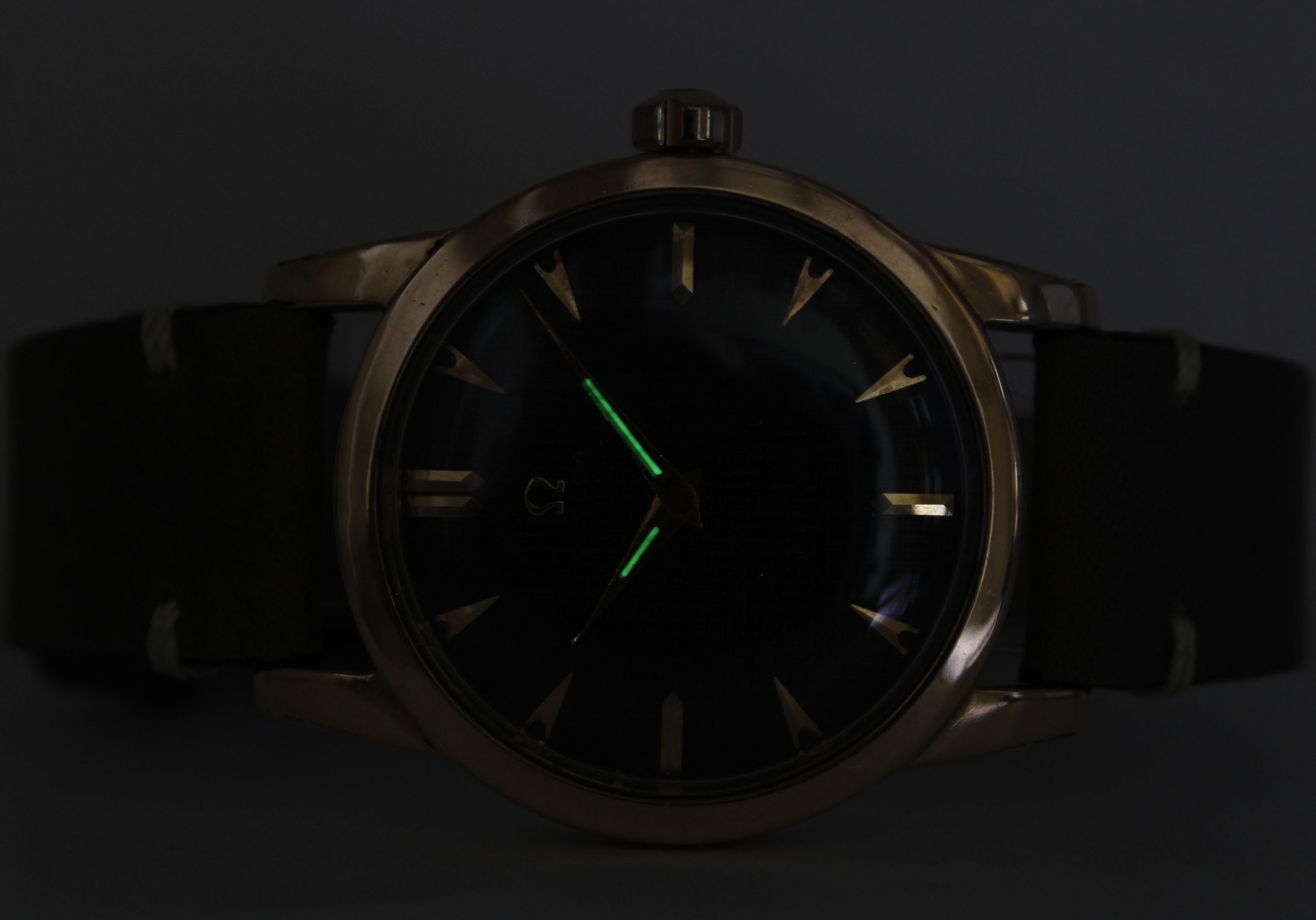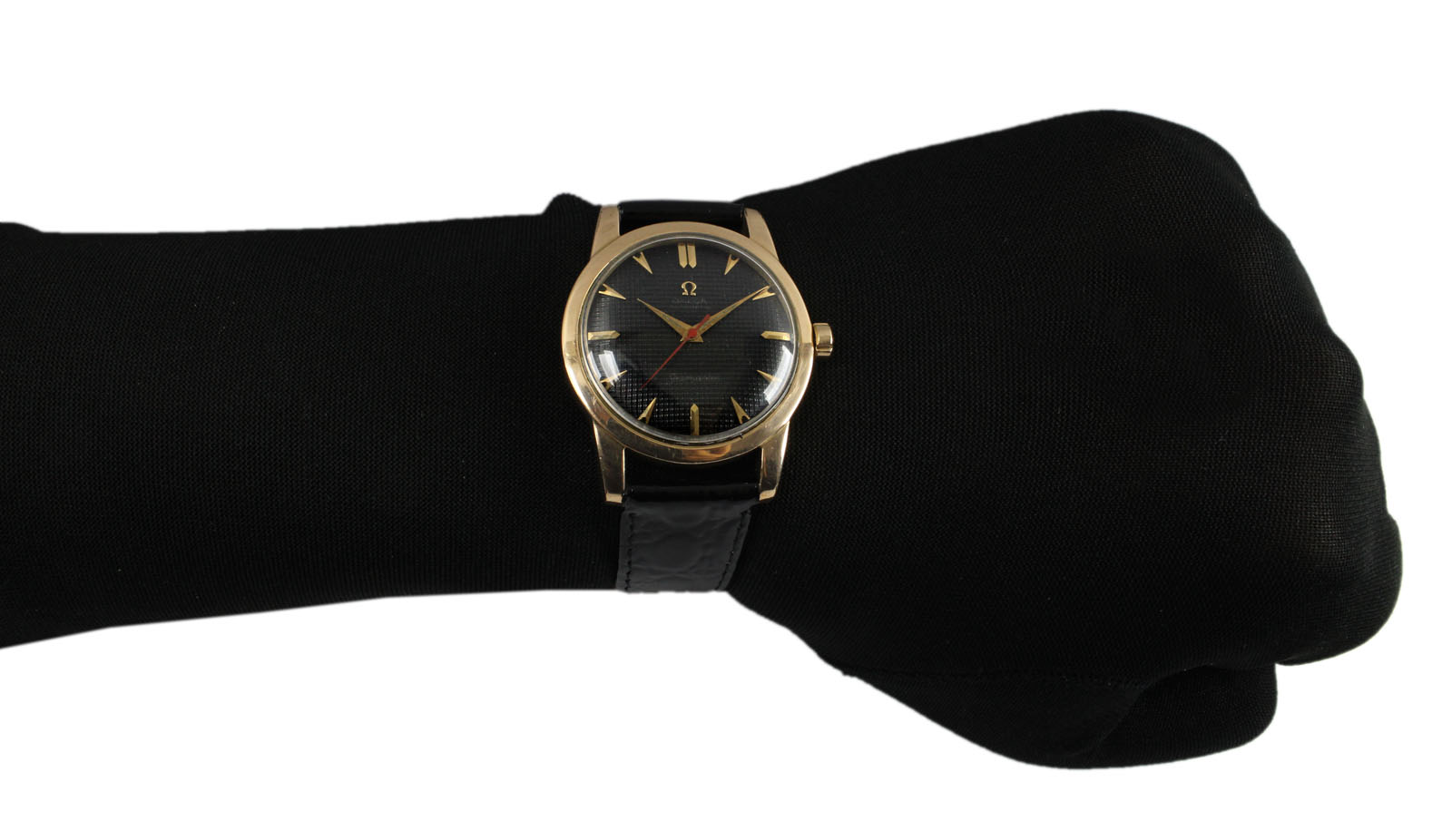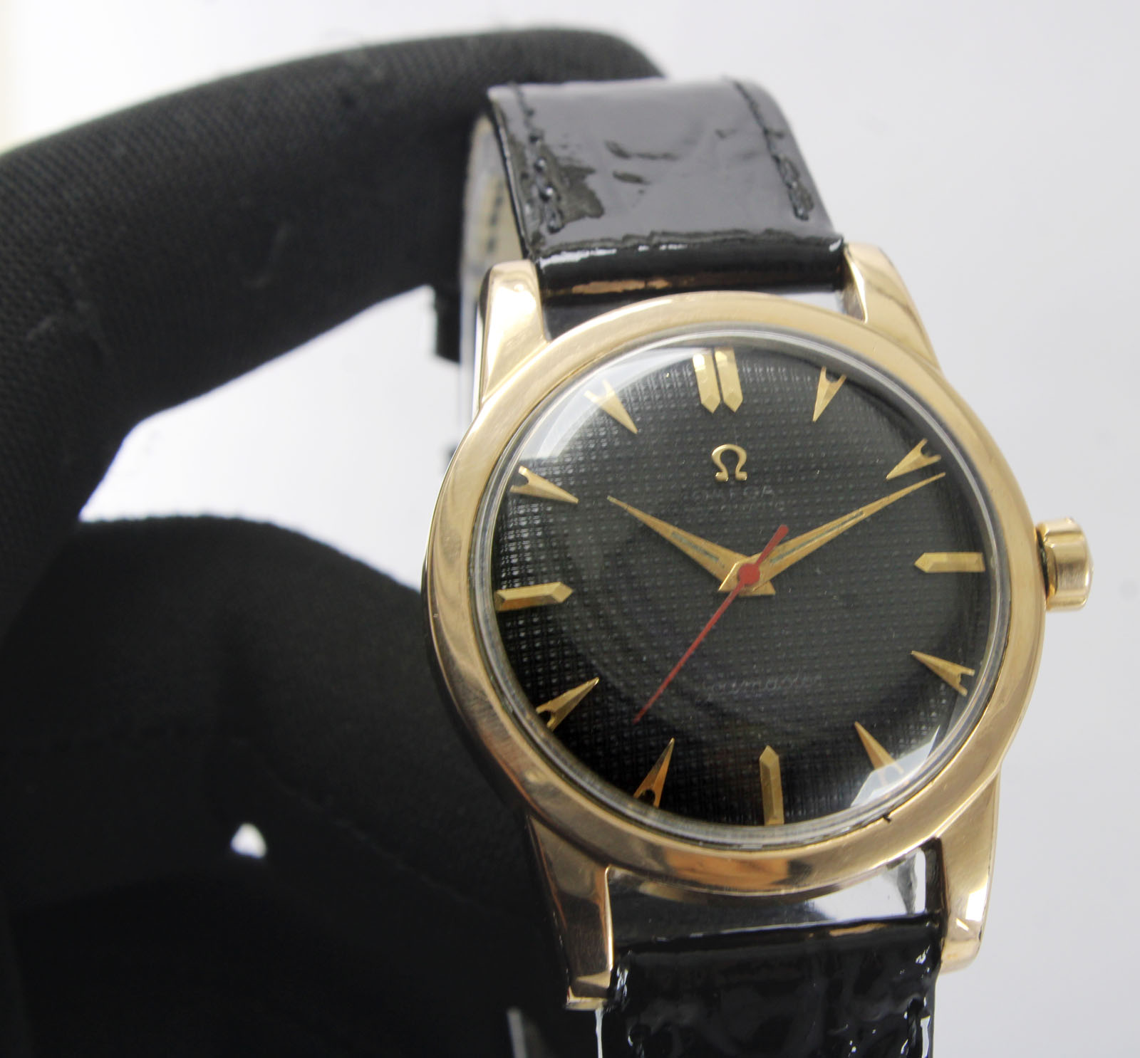 - OMEGA Seamaster Automatic Black Honey Comb Gold Cap Men Watch Ref 2577-25